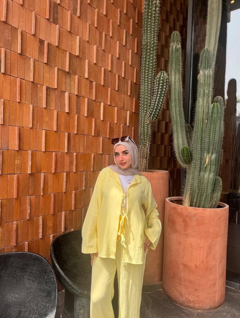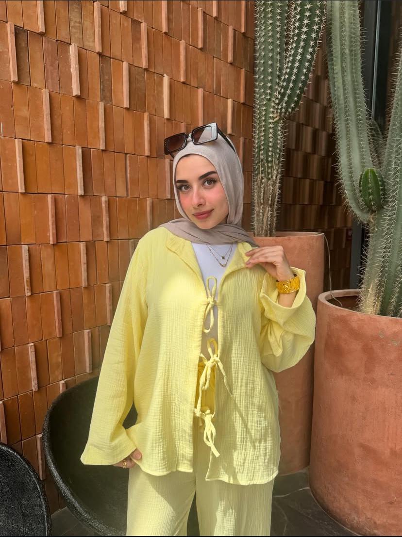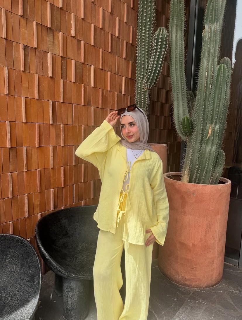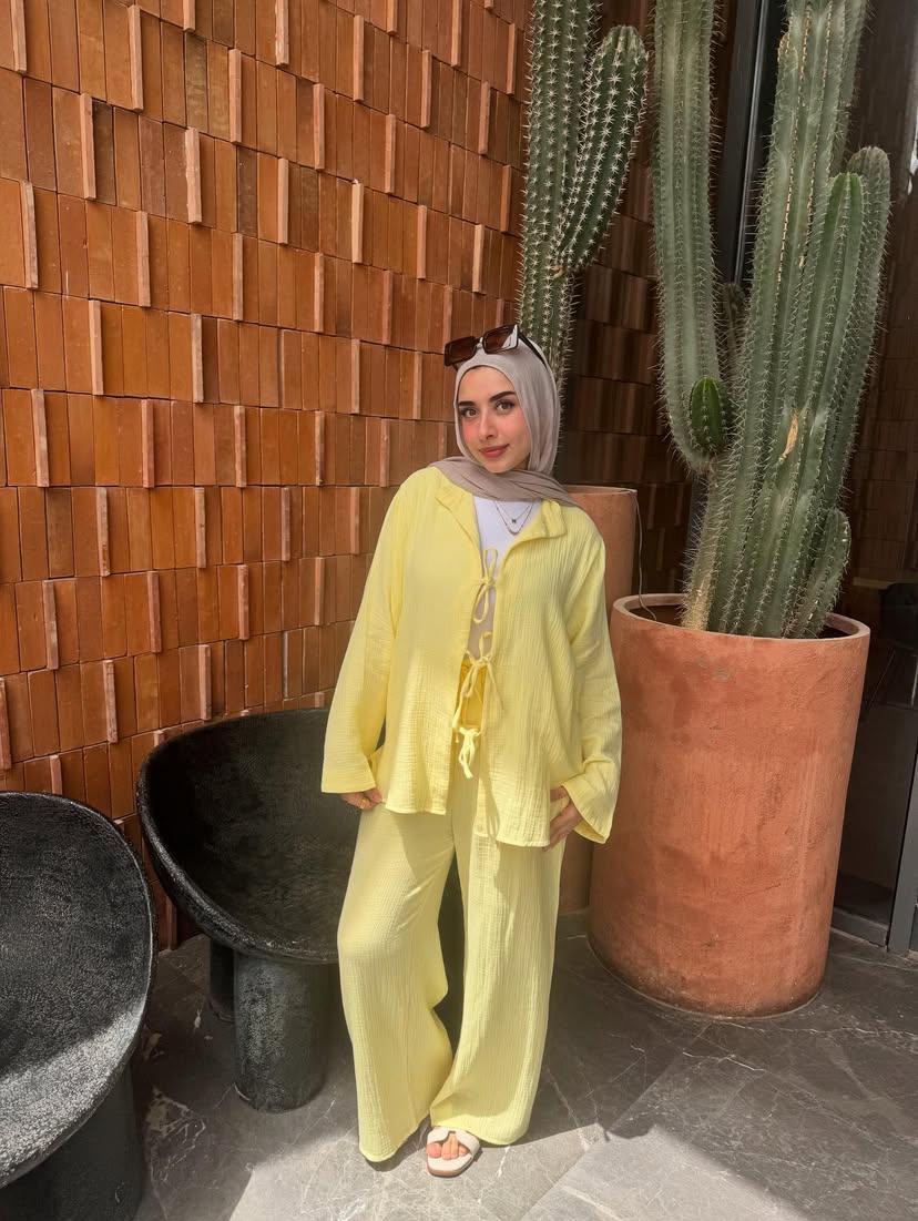 L’énergie du soleil dans un ensemble. Ce jaune doux illumine ton teint et te donne une vibe fraîche et positive. Parfait pour les journées d’été ou les moments chill avec style.